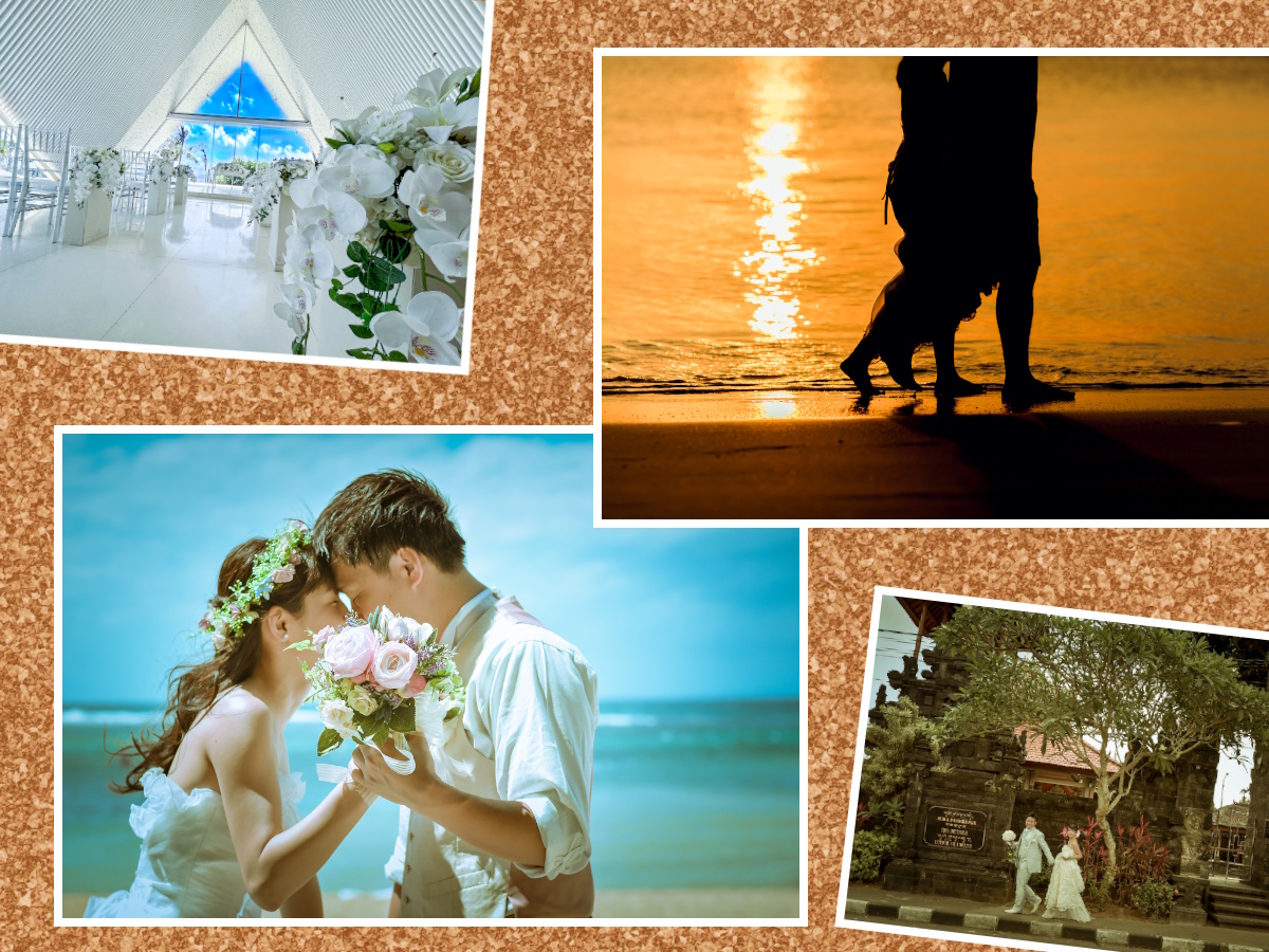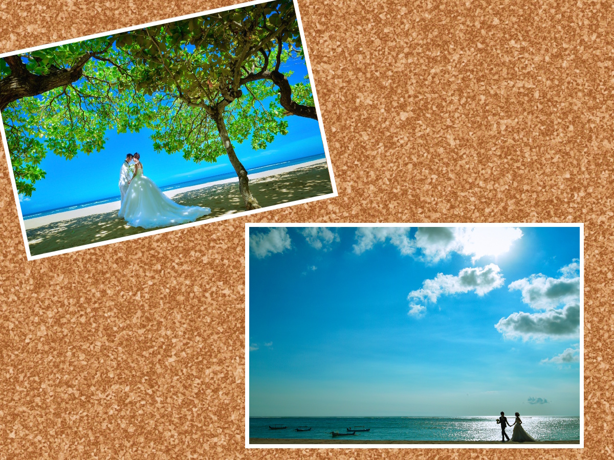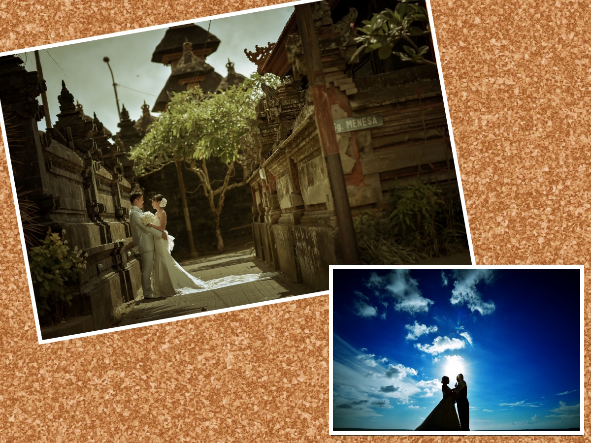 宗教に根差したバリ島の街での印象的なカットと南国らしいビーチでの撮影、2か所で思い出を残せる贅沢プラン♪