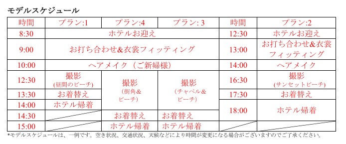 ウェディングフォトプランを組み込んだツアーの一例です。