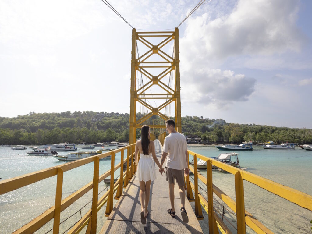 イエローブリッジは、レンボンガン島とチュニンガン島をつなぐ鮮やかな黄色の吊り橋で、島民や観光客にとって欠かせない移動手段です。徒歩やバイクで渡ることができ、チュニンガン島へ向かう際にはこの橋を通ります。