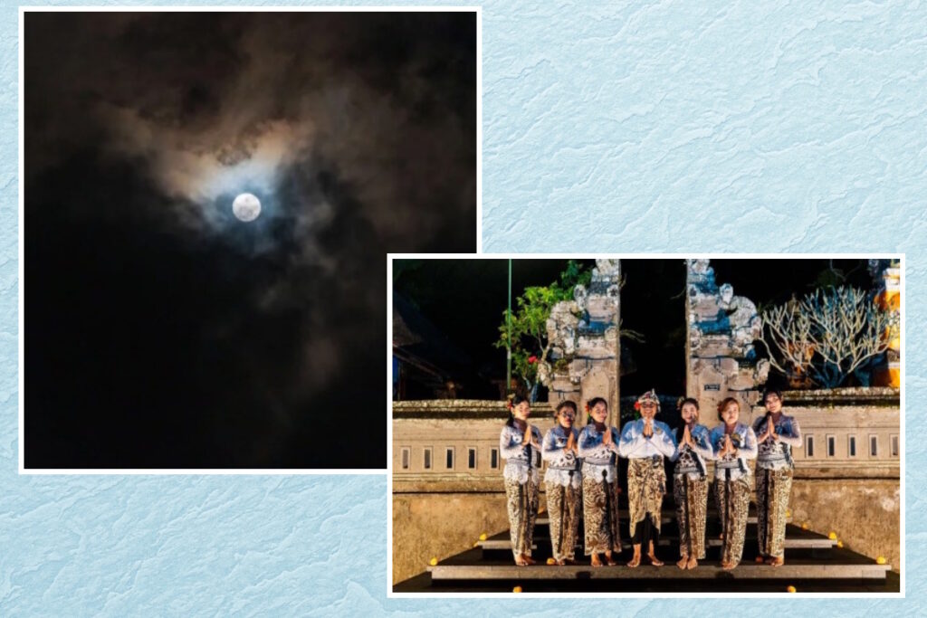 満月に合わせて特別に演奏されるもので、バリでは満月(プルナマ)は神々が地上に降りて祝福を授ける神聖な日とされ、祈り・浄化・感謝の時間です。太陽と月の調和は宇宙のバランスを象徴し、セロンディンの響きは天と地、魂の統一を表します。